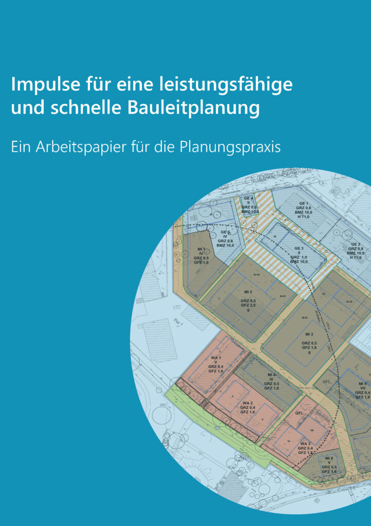 Vor diesem Hintergrund haben Praktiker:innen aus Büros und Verwaltung – Albrecht Reuss, Torsten Becker, Hannes Bäuerle, Thomas Schwolow, Jan Roth, Markus Müller, Dirk Baackmann, Martina Kirsch, Hubertus Zimmermann, Christian Plöhn Jan Benner und Hermann Ulrich – ein Arbeitspapier für die Planungspraxis entwickelt: “Impulse für eine leistungsfähige und schnelle Bauleitplanung”. Es enthält umsetzbare und adaptierbare Vorschläge und richtet sich an alle Beteiligten in Bebauungsplanverfahren. Die Initiative soll nur den Auftakt für einen selbstbewussten Diskurs mit Herzblut für Bauleitplanung darstellen.